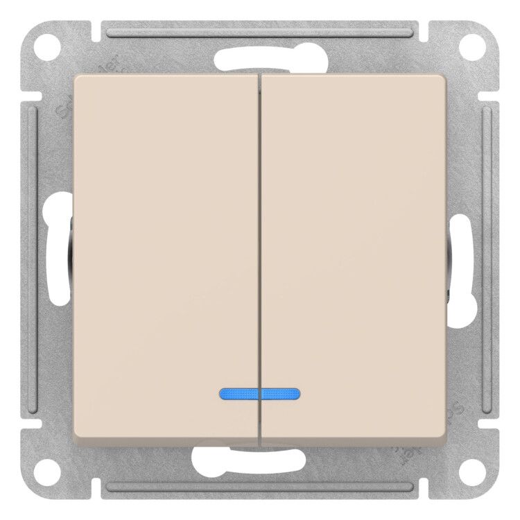 Выключатель двухклавишный ATLASDESIGN с подсветкой схема 5а 10АХ механизм бежевый - ATN000253 APC