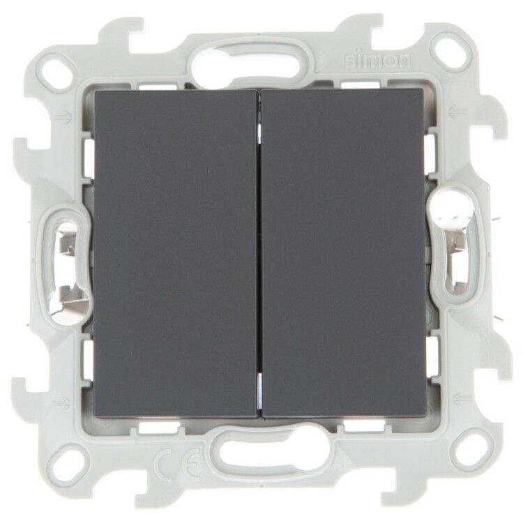 Выключатель двухклавишный Simon 2420398-038 - компактное устройство для управления двумя группами освещения или нагрузок в жилых и офисных помещениях. Матовая графитовая поверхность, винтовое подключение и степень защиты IP20 делают его надёжным решением для скрытой установки в стандартные подрозетники.
