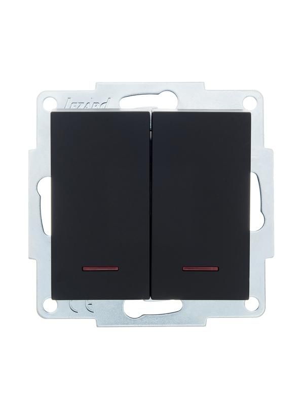 Выключатель 2-клавишный с подсветкой Lezard серии VESNA с черным бархатным механизмом предназначен для удобного управления двумя группами светильников в жилых и офисных помещениях. Модель сочетает надежную механику, мягкую подсветку и эргономичный дизайн, обеспечивая комфортную работу даже в темноте.