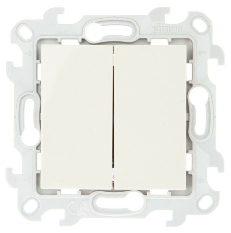 Выключатель двухклавишный 1-полюсный 2-модульный 10А IP20 механизм слоновая кость Simon 24 - это надёжный коммутирующий элемент для управления двумя группами освещения в помещениях с внутренней проводкой. Бренд Simon известен качественной сборкой, а артикул 2450398-031 соответствует серийной линейке рамочных выключателей с классическим дизайном.