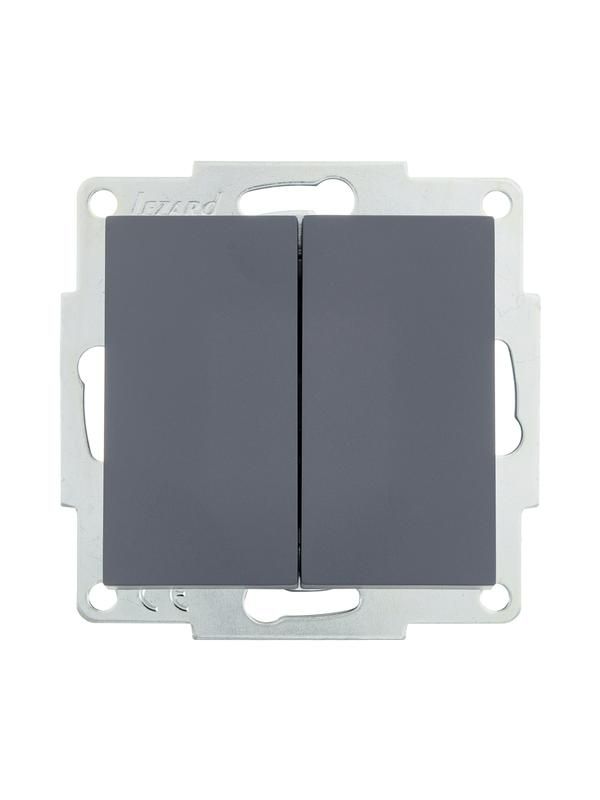 Выключатель двухклавишный механизм графит LEZARD СП - компактный элемент управления для организации освещения в двух зонах, например, ванной и туалета, или света над рабочей поверхностью и основного потолочного освещения. Артикул 742-3488-101 из серии VESNA предназначен для внутренней установки в стандартную коробку и совместим с большинством бытовых систем.