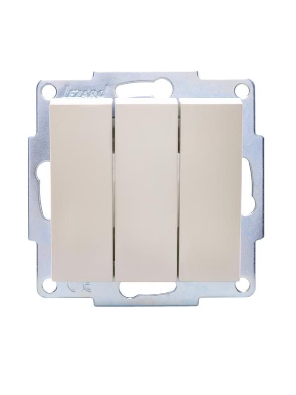 Выключатель 3-клавишный Lezard VESNA (артикул 742-3088-109) предназначен для управления несколькими группами освещения в помещениях с внутренней проводкой. Его перламутровый корпус сочетает функциональность с эстетичным дизайном, подходящим для современных интерьеров.