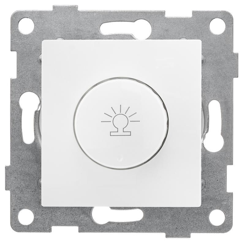Механизм диммера 500 Вт с накладкой и воротком белый GUSI используется для включения, выключения и плавного изменения яркости ламп накаливания и галогенных ламп. Применяется в жилых помещениях, ресторанах, отелях, залах ожидания - там, где важна атмосфера и контроль уровня освещённости. Не подходит для светодиодных и энергосберегающих ламп без соответствующего совместимого драйвера.
