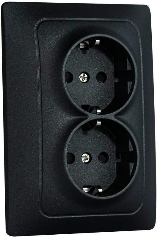 Механизм розетки 2-местный с заземлением с защитной шторкой, 16А, 250В, графит, ГСИ совместим со всеми стандартными подрозетниками диаметром 68 мм и рамками серии Bravo. Установка выполняется после окончательной отделки стен. Для монтажа: