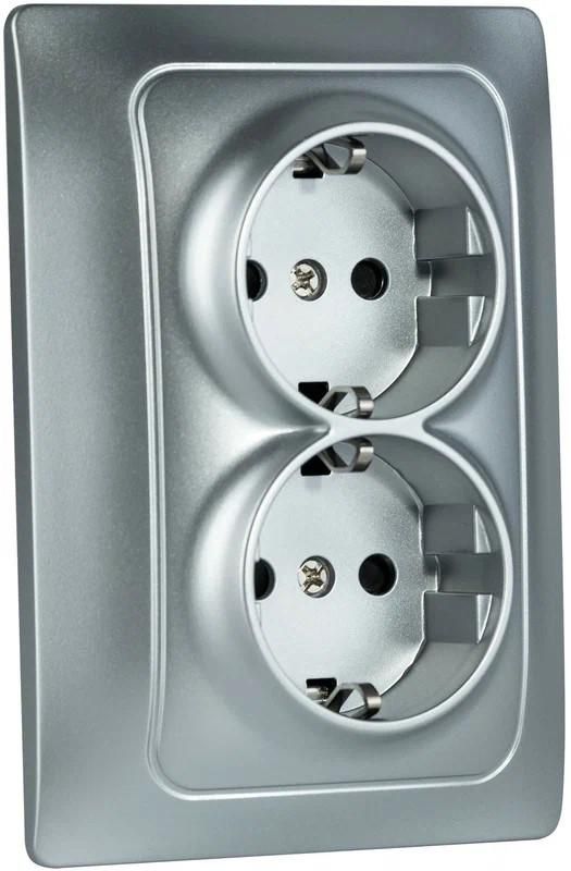 Механизм розетки 2-местн. с/з с з/ш СП Bravo 16А IP20 250В серебр. GUSI С10Р6-004