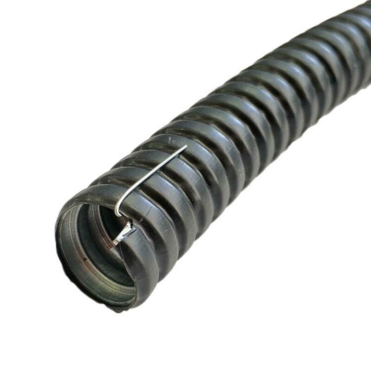 Металлорукав в ПВХ изоляции МРПИ НГ 15 d15мм с протяжкой (упаковка 50 м) черный используется для защиты электрокабелей, сетей связи, слаботочных проводов и других компонентов от механических повреждений, влаги, химических воздействий и перегрева. Подходит для прокладки в помещениях, на улице, в каналах, шахтах, на производствах и объектах с высокими требованиями к безопасности. Особенно эффективен там, где требуется частая замена или прокладка новых кабелей - благодаря наличию внутренней протяжки.