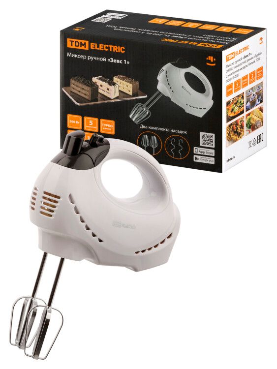 Миксер ручной «Зевс 1», 200 Вт, 5 скоростей, режим «Турбо», 2 комплекта насадок, белый, TDM | SQ4011-0001