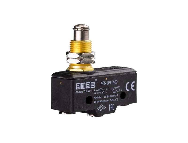 Выключатель концевой с плунжером и креплением на педали от бренда EMAS (артикул mn1pum9) предназначен для надёжного фиксирования положения механизмов через механическое воздействие на педаль - идеально подходит для автоматизированных систем, где требуется точное срабатывание при физическом контакте.