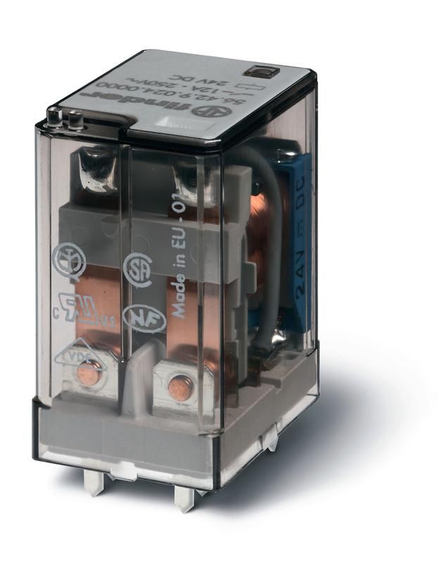 Миниатюрное силовое электромеханическое реле; монтаж на печатную плату; 2CO 12A; контакты AgNi; катушка 240В AC | 564282400000 Finder 56.42.8.240.0000