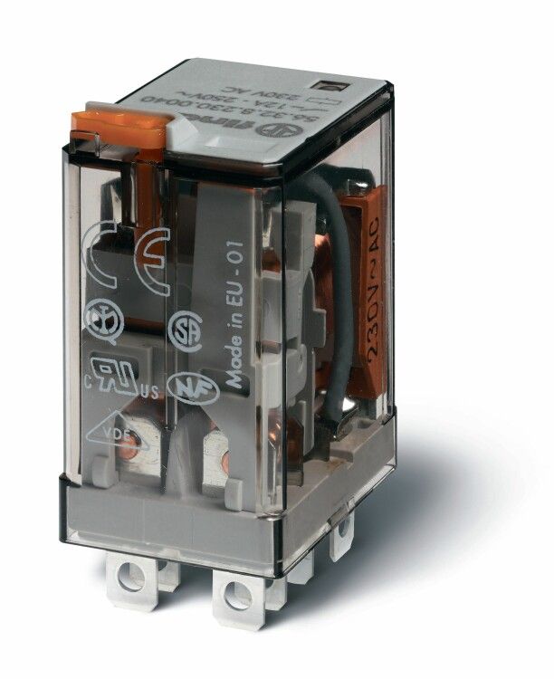 Миниатюрное силовое электромеханическое реле; монтаж в розетку или наконечники Faston (4.8х0.5мм); 2NO 12A | 563282300300PAS Finder 56.32.8.230.0300PAS