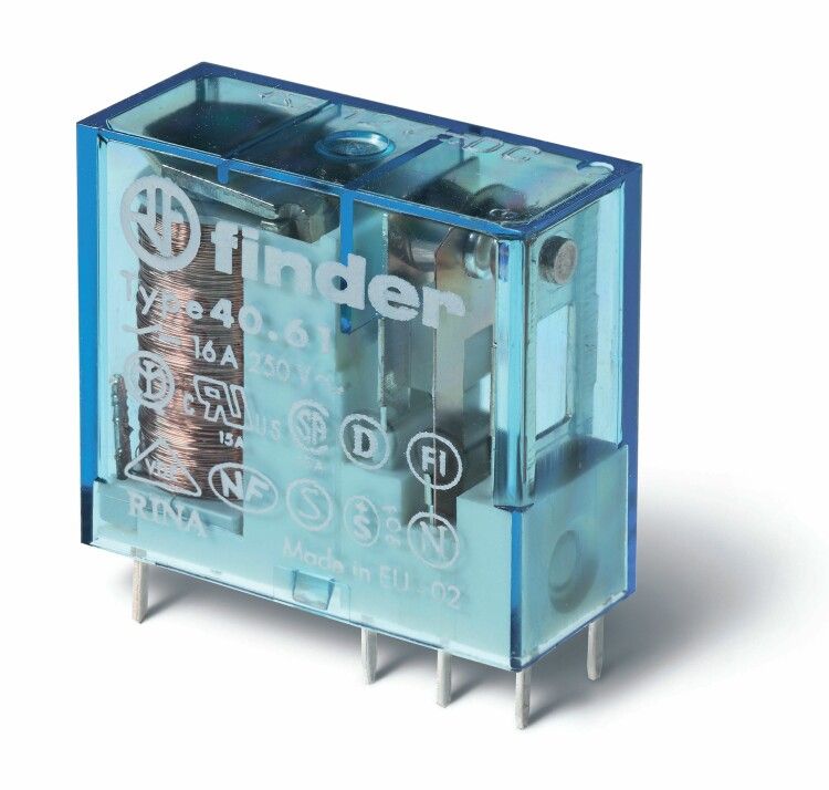 Миниатюрное универсальное электромеханическое реле; монтаж на печатную плату или в розетку; выводы с шагом 5мм; 1CO 16A | 406190060000 Finder 40.61.9.006.0000