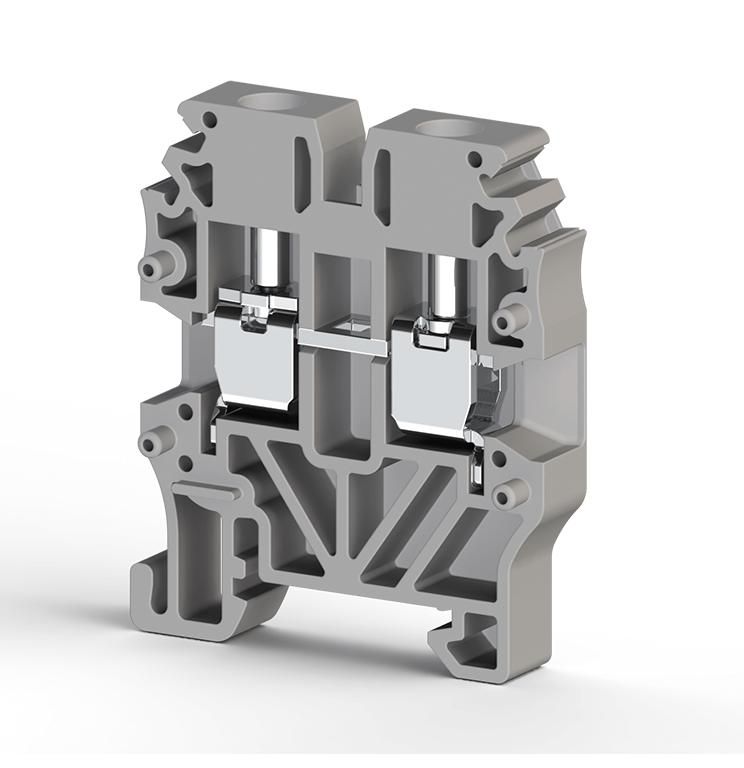 Клеммник MVK2.5 монтируется на DIN-рейку шириной 35 мм. Установка происходит защёлкиванием - достаточно совместить выступы на основании с рейкой и слегка надавить. Для подключения провода ослабьте винт, вставьте жилу (без зачистки изоляции - можно использовать провод с опрессованной наконечником или голую жилу), затем затяните винт усилием около 0,2–0,3 Нм. Не перетягивайте - это повредит контактную поверхность.