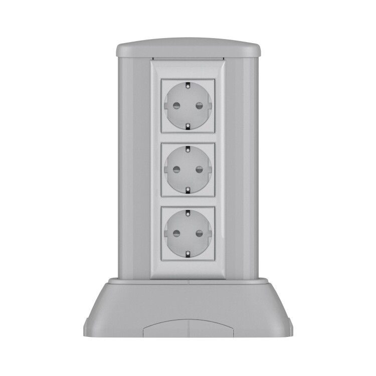Миниколонна алюминиевая, 0.25 м, цвет серый металлик, RAL 9006 предназначена для размещения электроустановочных изделий (ЭУИ) в зонах, удалённых от стен - например, в центре производственных площадок, на сборочных линиях, в лабораториях или офисах с открытой планировкой. Конструкция обеспечивает удобный доступ к выключателям, розеткам, кнопкам управления и другим устройствам с обеих сторон. Подходит для временной или постоянной установки благодаря мобильному исполнению.