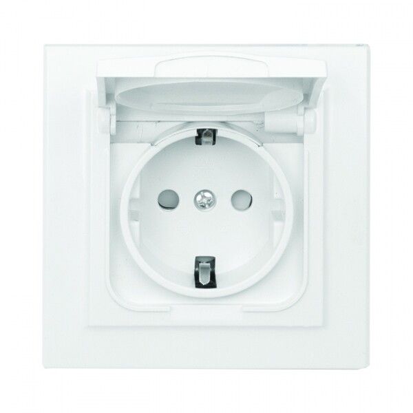 Розетка Минск 1-местная СП с заземлением и крышкой16А белая защитные шторки IP44 Basic - ERR16-029-100-44 EKF