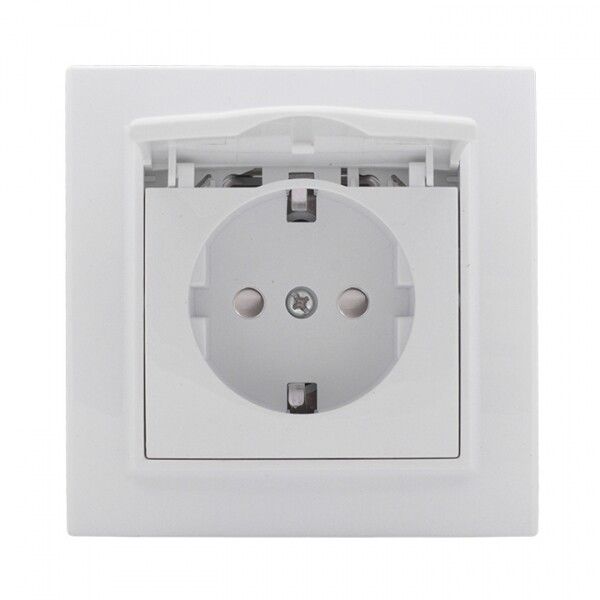 Розетка Минск 1-местная СП с заземлением и крышкой 16А белая защитные шторки Basic - ERR16-029-100 EKF