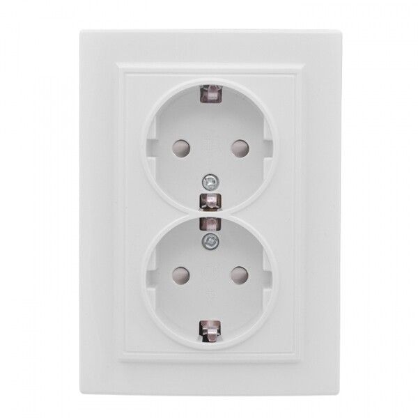 Розетка предназначена для подключения бытовых и профессиональных устройств мощностью до 3,6 кВт (при 230 В и 16 А). Подходит для установки в стены из бетона, кирпича или гипсокартона с предварительно подготовленными подрозетниками. Часто используется в квартирах, домах, офисах, школах и медицинских учреждениях, где требуется одновременное подключение двух приборов с заземлением - например, компьютера и принтера, телевизора и зарядного устройства.