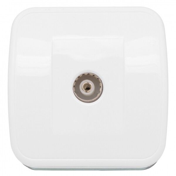 Розетка телевизионная TV 1-местная ОП 75Ом 5–862 МГц белая используется для подключения телевизора, приставки, модема или другого устройства через коаксиальный кабель с волновым сопротивлением 75 Ом. Подходит для работы с аналоговым и цифровым сигналом - от обычного эфирного ТВ до спутникового и IPTV. Применяется в квартирах, домах, офисах, гостиницах и других зданиях, где требуется точка доступа к телевизионному сигналу. Устанавливается в местах, где есть готовый кабельный ввод - например, рядом с телевизором или в стене возле места расположения антенны.
