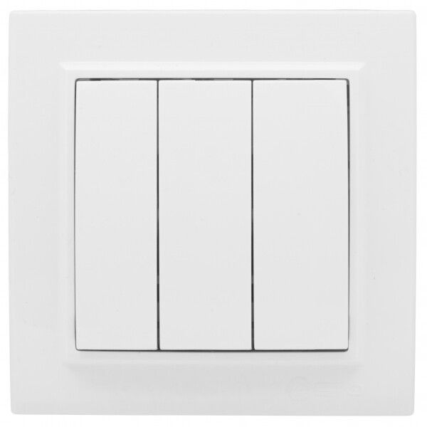 Выключатель 3-клавишный СП, 10А, белый, серия Минск (Basic) предназначен для коммутации трёх независимых световых цепей - например, люстры, бра и точечных светильников. Подходит для помещений с обычной влажностью: спальни, гостиные, коридоры, офисы, школы. Устройство устанавливается в стену, скрытым способом, совместимо со стандартными подрозетниками.
