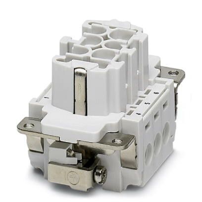 Модуль для контактов HC-B 6-I-UT-F от Phoenix Contact - это прямоугольный модульный контактный блок без корпуса, предназначенный для электрического подключения различных устройств. Он имеет 6 полюсов с гнездовым типом контакта, выполненным из других медьсодержащих сплавов, что обеспечивает надежное соединение. Материал контактного вкладыша - пластик, а контактная поверхность покрыта серебром, что обеспечивает хорошую проводимость электрического тока.