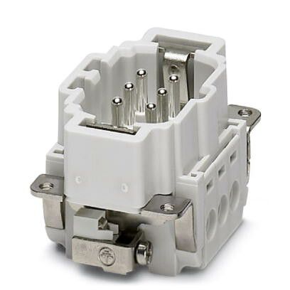 Модуль для контактов HC-B 6-I-UT-M от компании Phoenix Contact представляет собой прямоугольный модуль с штыревыми контактами. Он обладает номинальным током 16 А и имеет 6 полюсов. Материал контактов изготовлен из других медьсодержащих сплавов, а контактный вкладыш выполнен из пластика с серебряной поверхностью.