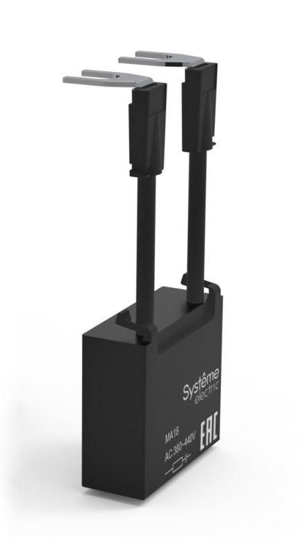 Модуль ограничения перенапряжения MC1E RC 110-240V 9-18A совместим исключительно с контактными устройствами серии SystemePact MC1E. Установка выполняется на переднюю поверхность контактора - специальные крепления обеспечивают плотное соединение без дополнительного провода. Подключение происходит через штыревые выводы, соответствующие зажимам катушки контактора. Нельзя использовать с другими сериями контакторов или моделями вне системы SystemePact MC.