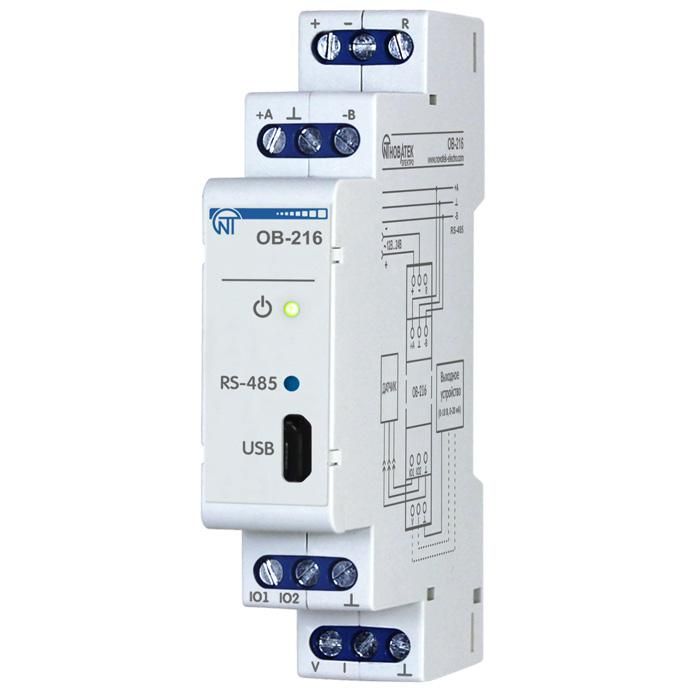 Модуль ввода-вывода ОВ-216 одноканальный 4 режима работы 5 типов датчиков(выходной сигнал 0-10В 4-20мА) TTL-Modbus НовАтек-Электро 3425604216