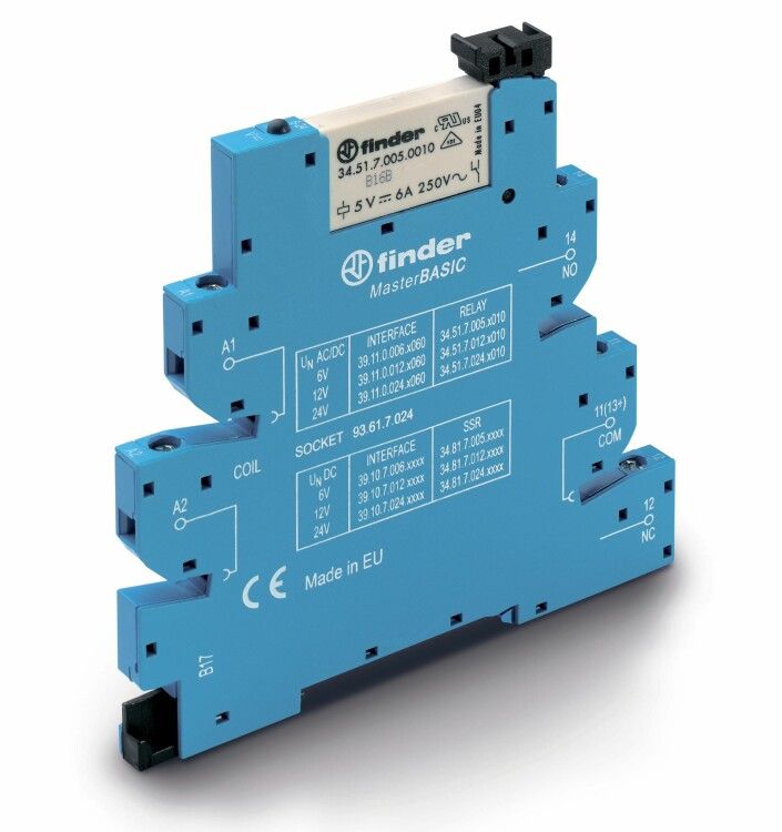 Интерфейсный модуль, электромеханическое реле, серия MasterBASIC; 1CO 6A; контакты AgNi; питание 12В AC/DC | 391100120060 Finder 39.11.0.012.0060
