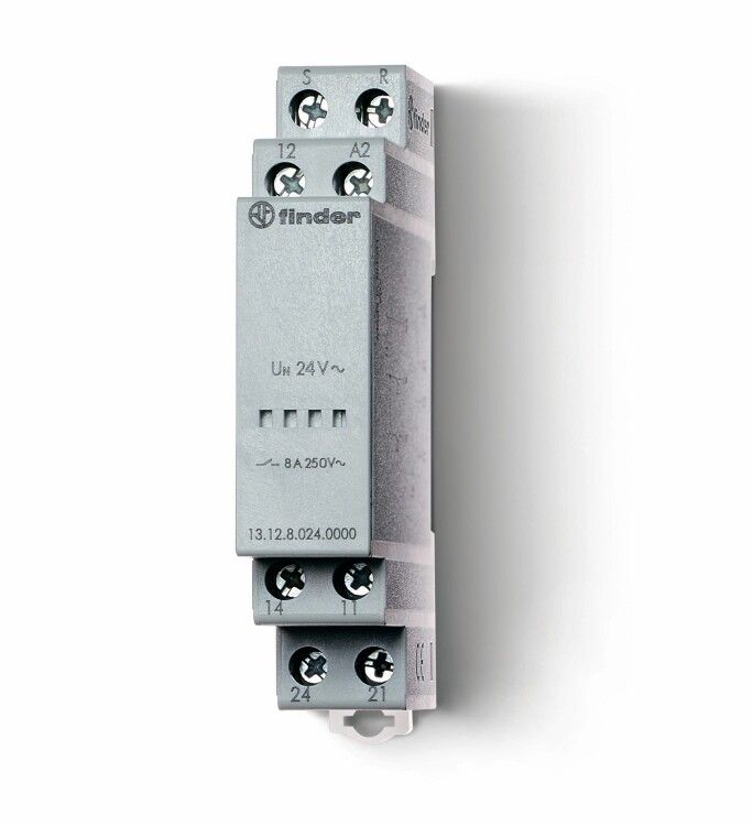 Реле модульное электронное вызывное со сбросом 1CO+1NO 8A, питание 24В AC/DC, ширина 17.5мм, степень защиты IP20 от Finder (артикулы 131200240000 / 13.12.0.024.0000) - это компактное бистабильное реле для управления нагрузками до 8 А в системах автоматизации жилых и коммерческих помещений, например, в душевых, гостиничных номерах или на входных группах. Его ключевая особенность - возможность удерживать состояние после срабатывания без постоянного питания катушки.