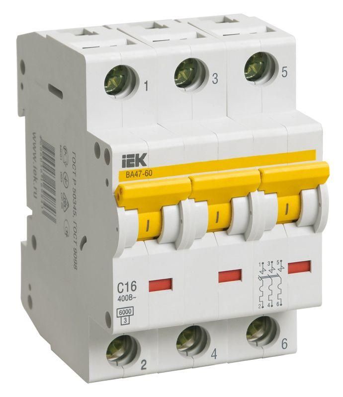 Выключатель автоматический модульный 3п D 16А 6кА ВА47-60M KARAT IEK MVA31-3-016-D MVA41-3-016-D