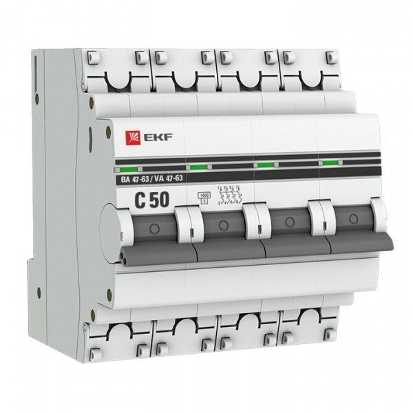 Выключатель автоматический четырехполюсный ВА 47-63 50А C 4,5кА PROxima | mcb4763-4-50C-pro EKF