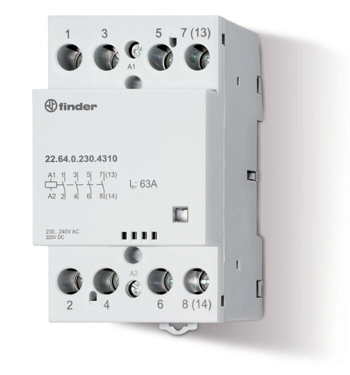 Контактор модульный Finder 22 используется для удалённого включения и выключения электрических нагрузок. Подходит для управления двигателями, нагревательными элементами, освещением и другим оборудованием, требующим частых переключений. Применяется в системах автоматизации, на конвейерах, в насосных станциях, в распределительных щитах промышленных объектов.