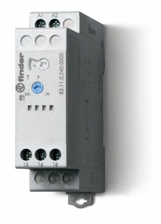 Мультифункциональный модульный таймер, Широкий диапазон напряжений, Ширина 22.5мм, 1CO 16A, Задержка ВКЛ (AI) - 831102400000 FINDER 83.11.0.240.0000