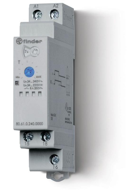 Модульный таймер 1-функциональный (ВI); питание 24…240В АС/DC; 1CO 8A; ширина 17.5мм; регулировка времени 0.05с…180c | 806102400000T Finder 80.61.0.240.0000T