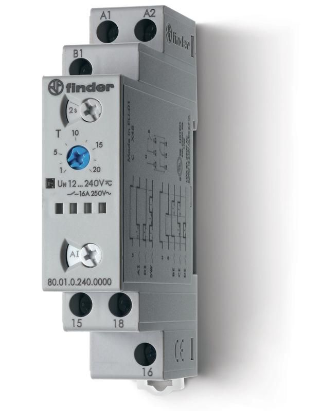 Модульный таймер мультифункциональный (AI, DI, SW, BE, CE, DE); питание 12…240В АС/DC; 1CO 16A; ширина 17.5мм | 800102400000T Finder 80.01.0.240.0000T
