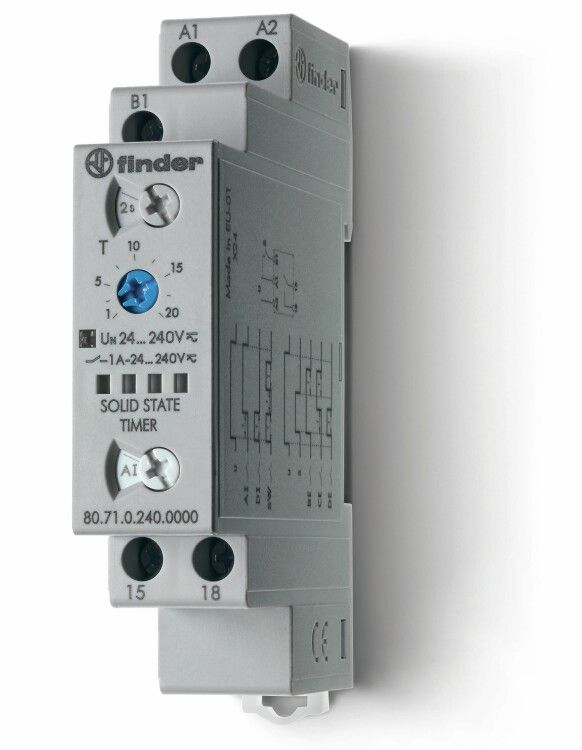 Модульный таймер мультифункциональный (AI, DI, SW, BE, CE, DE); питание 24…240В АС/DC; выход - твердотельное реле 1NO 1A | 807102400000 Finder 80.71.0.240.0000