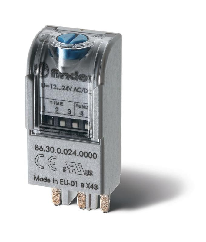 Модульный таймер, Разное напряжение, для применения с розетками 90.02,90.03,92.03, 94.02, 94.03, 94.04, 95.03, 95.05 и 97, Задержка ВКЛ (AI), Импульс при включении (DI), Упаковка 1 реле - 86.30.8.120.0000PAS FINDER 863081200000PAS