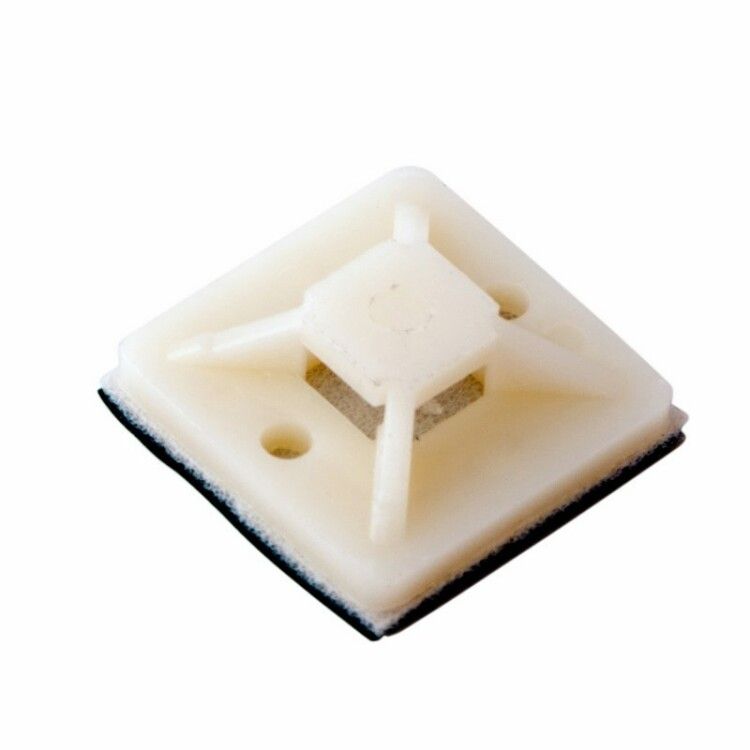 Площадка самоклеящаяся 20х20 мм крепится на чистую, сухую и ровную поверхность: пластик, стекло, окрашенный металл, ЛДСП. Перед установкой протрите поверхность спиртом или обезжиривающим составом. Приложите площадку, надавите рукой на 10–15 секунд и оставьте на 2–3 минуты для полной адгезии. Крепите стяжку после того, как клей полностью схватился. Нельзя применять на пористых, шероховатых или маслянистых поверхностях. Монтажное отверстие отсутствует - сверление или заклепки невозможны.