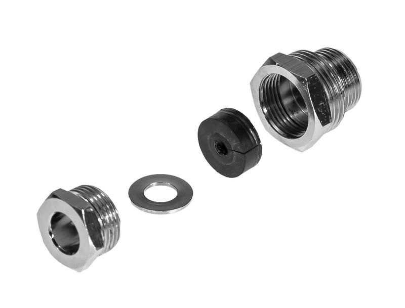 Муфта для установки кабеля в трубу устанавливается в просверленное отверстие в стенке трубы. Кабель Pipeheat-15 продевается через внутренний канал муфты, после чего она плотно закручивается в отверстие с помощью наружной резьбы. Для герметизации рекомендуется использовать термостойкий герметик на основе силикона. Убедитесь, что диаметр отверстия соответствует размеру резьбы муфты - не допускаются зазоры, которые снижают герметичность. После монтажа проверьте целостность изоляции кабеля и отсутствие перегибов.