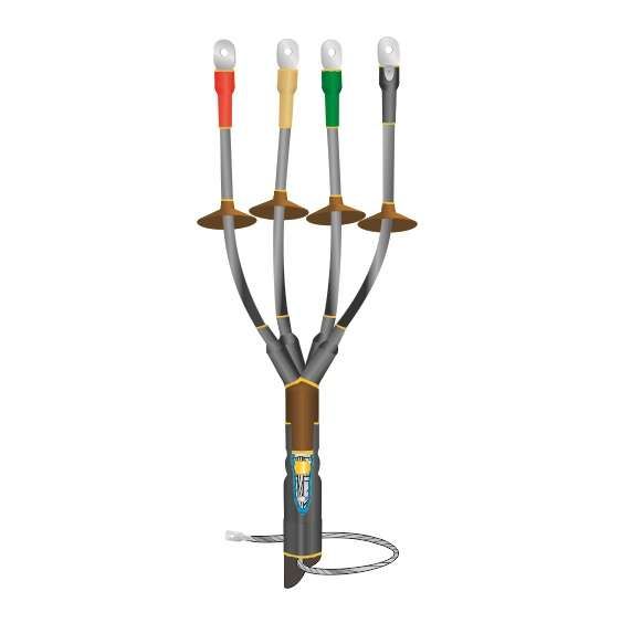 Основные элементы муфты - трубки и колпачки из модифицированного полиэтилена - равномерно усаживаются теплом, плотно облегая кабель. Жильные изоляторы предварительно установлены внутри, их положение не требует регулировки. Заземление выполняется через пружинный контакт для кабелей с бумажной изоляцией или пайкой к броне.