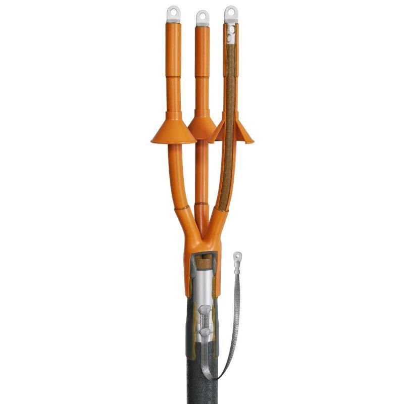 Муфта кабельная концевая 3КНТп-10-150/240 (пайка) от КВТ предназначена для надежного оконцевания трехжильных кабелей с бумажной маслопропитанной изоляцией на напряжение 10 кВ. Подходит для наружной установки, обеспечивает герметичность и механическую защиту за счет термоусаживаемой конструкции и паяного заземления.