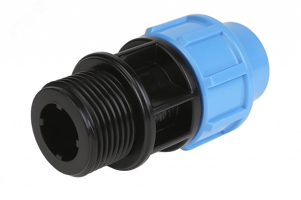 - Переход от PE-трубы к запорной арматуре с резьбой 1¼ дюйма