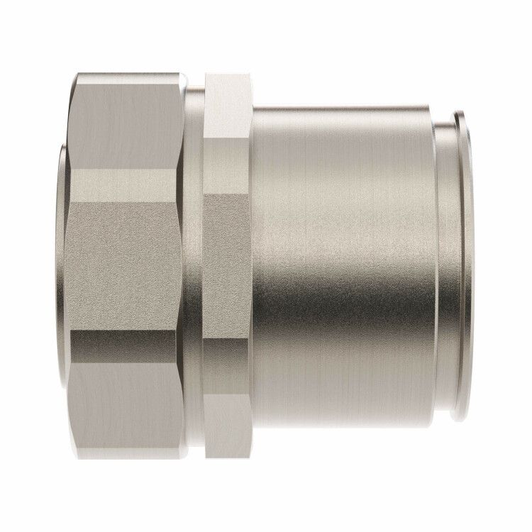 Муфта металлорукав DN 40, жесткая труба d 40 мм, IP66/IP67, никелированная латунь от DKC (ДКС), артикул 6117-40, предназначена для герметичного соединения жесткой металлической трубы с гибким металлорукавом в условиях повышенной влажности, запыленности и агрессивной среды.