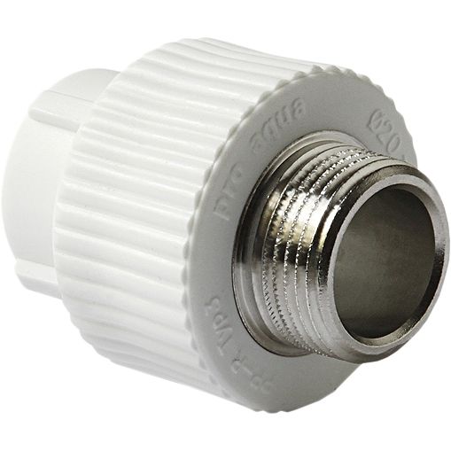 - Муфта комбинированная нержавеющая белая 40-1 от PRO AQUA - один из немногих вариантов с белым корпусом; выбирайте её, когда важно визуальное различение типов соединений