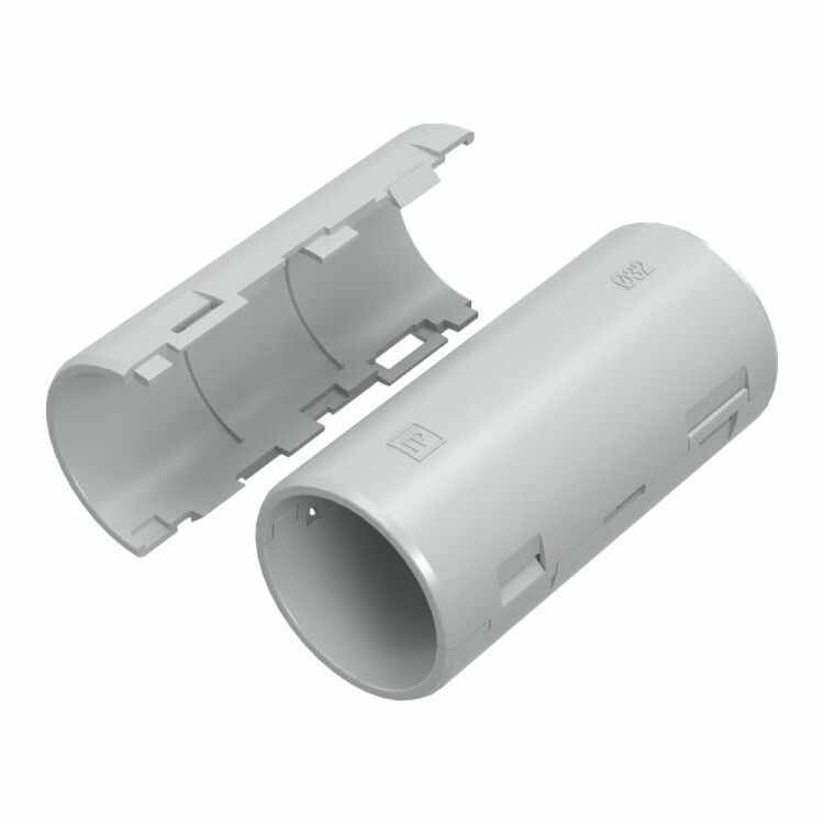 Муфта разборная d32 мм атмосферостойкая серая совместима с любыми трубами наружным диаметром 32 мм - как гофрированными, так и гладкими. Для монтажа: