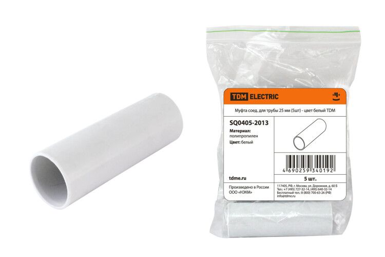| Муфта соед. для трубы 25 мм (5шт) - цвет белый | SQ0405-2013 | TDM | 04.03.2026 | Под заказ | 14,42 ₽ | шт. | от 30 дней |