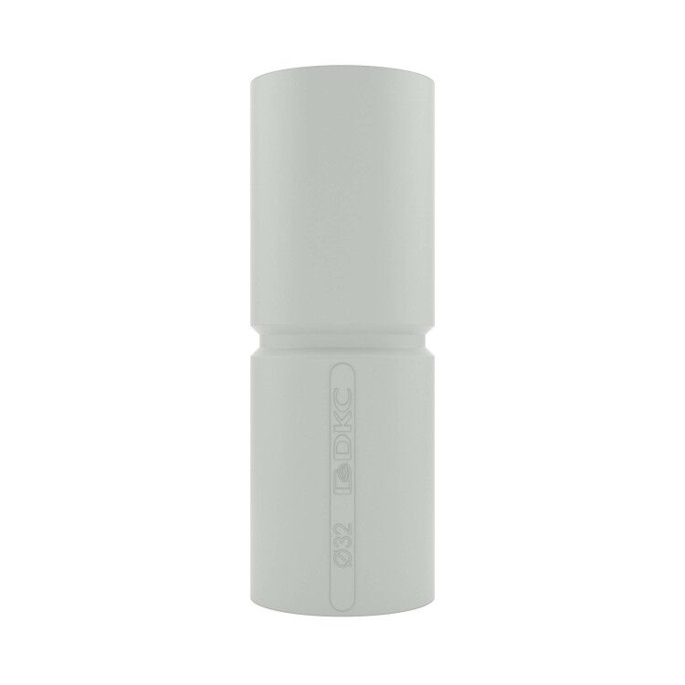 Муфта соединительная труба-труба с ограничителем IP40, диаметр 32 мм от DKC (ДКС), артикул 54932r1, предназначена для надёжного соединения труб системы Express в электропроводке внутри помещений и в бетонных конструкциях. Изготовлена из полипропилена, не содержит галогенов, имеет серый цвет и встроенную ограничивающую вставку для точного центрирования.