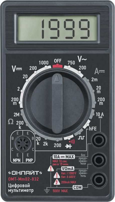 | Мультиметр цифровой Онлайт OMT-мм02-832 - 23925 | 15.01.2026 | 10 шт. | 441,8 ₽ | шт. | от 1 дня |