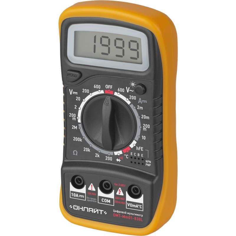 Мультиметр 90 081 ОMT-Mm01-838L (838L) от бренда ОНЛАЙТ - компактный цифровой прибор для измерения напряжения, тока, сопротивления и проверки целостности цепей. Подходит для бытовых и профессиональных задач в условиях ограниченного пространства.