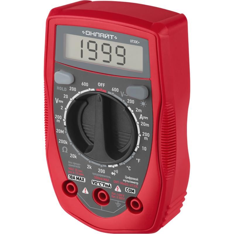 Мультиметр OMT-Mm03-UT33C (UT33C+) - компактный измерительный прибор для проверки напряжения, тока и сопротивления в бытовых и профессиональных сетях до 230 В. Разработан компанией ОНЛАЙТ, артикул 90230, подходит для диагностики электрооборудования, розеток, проводки и маломощной автоматики.