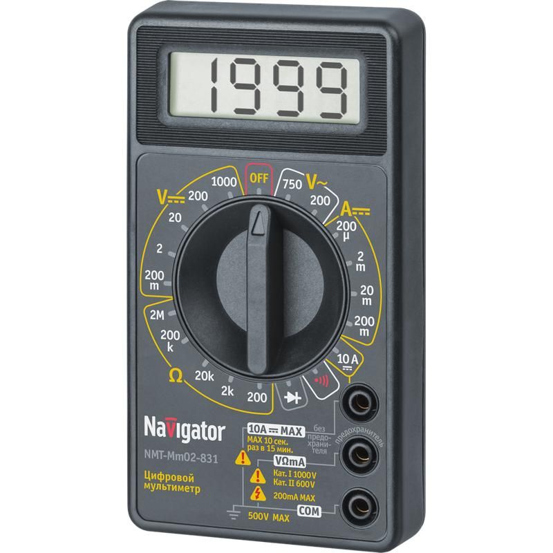 Мультиметр 93 587 NMT-Mm02-831 - точный цифровой прибор для измерения напряжения, тока и сопротивления в бытовых и промышленных сетях. Разработан для профессионального использования, сочетает надёжность бренда Navigator и функциональность серии NMT-MM.